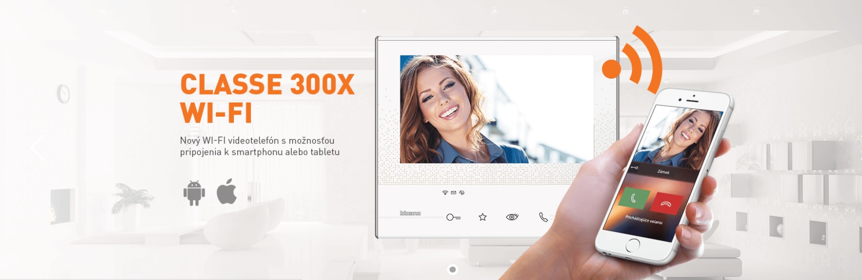 Classe 300X Wi-Fi je nový videotelefón, ktorý kombinuje moderný vzhľad s inovatívnymi funkciami. Pomocou integrovanej Wi-Fi a aplikácie môže byť pripojený k smartphonu alebo tabletu.